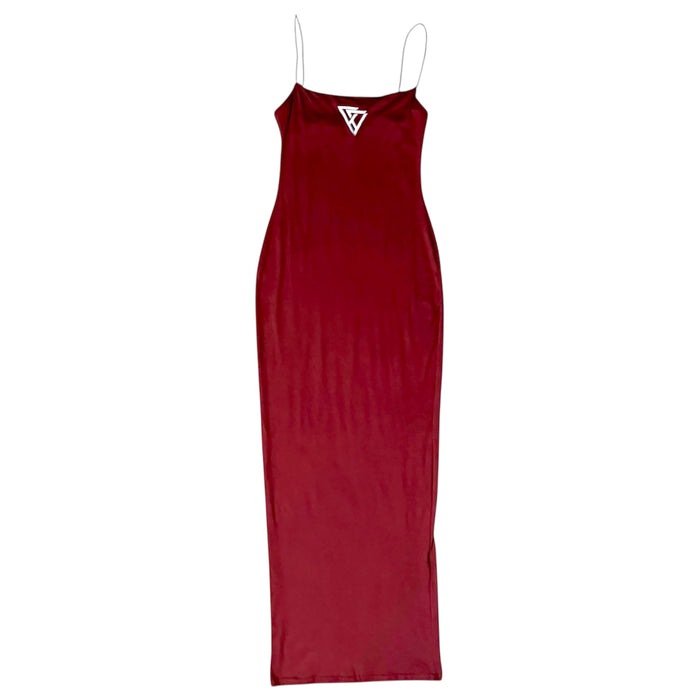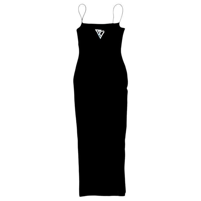 Elevate Exchange Stamp - Center Chest (Maxi Spaghetti Strap Bodycon Dress)   Polyester  Spandex Soft Comfortable  Lightweight  Run True To Size